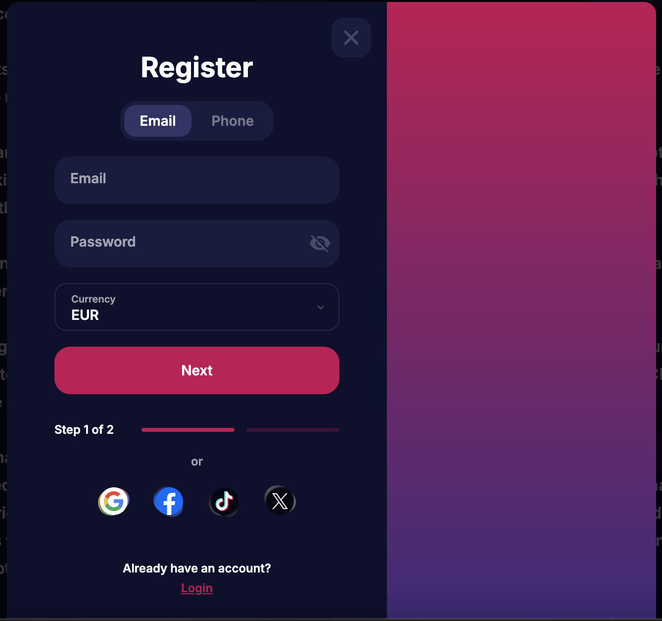- Inscription via les réseaux sociaux : Les joueurs peuvent s’inscrire rapidement en utilisant leurs comptes sur les réseaux sociaux populaires tels que Google, TikTok et X, ce qui simplifie la procédure d’inscription.